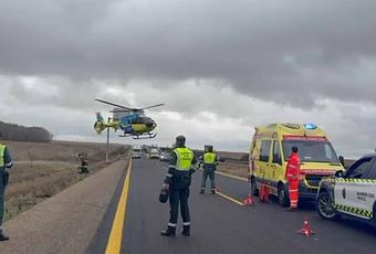 Según ha informado la Subdelegación del Gobierno en Zamora, la colisión se ha producido sobre las 14.40 horas, cuando el vehículo que circulaba en sentido contrario ha colisionado con otros dos, lo que ha provocado dos heridos, uno de ellos atrapado y que ha tenido que ser excarcelado para ser posteriormente trasladado en helicóptero de atención sanitaria al hospital.