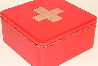 En primer lugar os proponemos este botiquín de lata de estilo retro. Esta original caja nos puede servir para tener las medicinas en perfecto orden a la misma vez que decoramos la estancia. La tapadera está decorada con dos tiritas en forma de cruz. Ideal para ordenar y decorar.