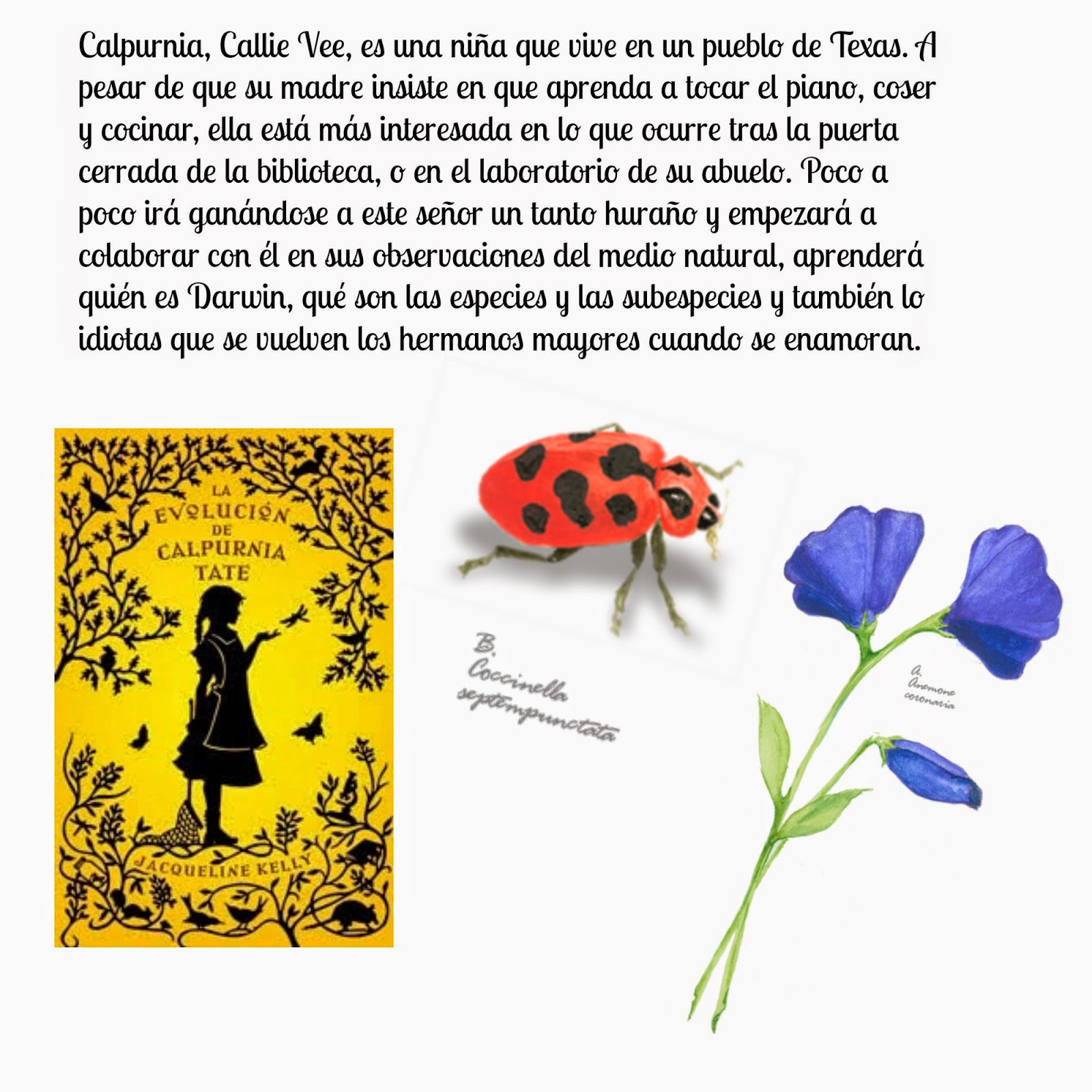 Ambos libros son una lectura muy recomendable por varios motivos, son dos buenas historias, muy bien contadas, muy tiernas. Mi hermana vive sobre la repisa de la chimenea de Annabel Pitcher. Este libro me lo recomendó una amiga y me encantó. Es el primer libro de esta joven autora y no podría haberme gustado más, es una historia conmovedora. Es corto porque una vez que lo coges no puedes soltarlo, es ameno, cercano, realista y sencillo. Consigue tratar temas muy espinosos, una realidad tristísima sin caer en un sentimentalismo que lo lleve a la ñoñería. Me gustó mucho que el tratamiento de estos temas se haga a través de la visión de un niño, desde su inocencia pero también con observaciones y preguntas propias de la curiosidad de un niño que crece y empieza a entender. Me parece que tiene mucho mérito retratar los pensamientos de un niño y que sea creíble y realista. En este tema la autora es muy coherente con lo que cabe esperar de un niño de 10 años, la historia está muy bien desarrollada y no decae en ningún momento. A través de Jamie vemos como afecta una pérdida importante en el seno de una familia y como un niño intenta comprender el desmoronamiento de su familia, la problemática de la vida adulta y sobre todo, el significado de lo que pasó. Un libro que os hará sonreír y reír, que os hará pensar y sobre todo concluiréis que habéis invertido muy bien vuestro tiempo.La evolución de Calpurnia Tate de Jacqueline Kelly, otro libro que se ve desde el punto de vista de una niña, en esta ocasión tiene unos 11 años y transcurre en 1899. La narración es sencilla como cabe esperar de una niña de su edad pero sus observaciones son muy acertadas. Todo se ve desde el punto de vista de una niña inteligente, observadora de lo que ocurre a su alrededor, sobre todo de la naturaleza, es lista y quizá mucho más que sus hermanos, que le interesa estudiar y siente todo tipo de inquietudes que no se corresponden con lo que se espera de una mujer de su época, el tratamiento de este tema es perfecto incluso cuando habla de su madre que no la entiende. Ella es inocente y encantadora. La historia narra como se empieza a relacionar muchísimo con su abuelo, una relación encantadora y entrañable. Su abuelo es un "científico" que le enseñará a pensar, a observar y deducir. El título del libro no puede ser más acertado pues Calpurnia leerá " la evolución de las especies" de Darwin. Creo que es un libro que hay que leer.