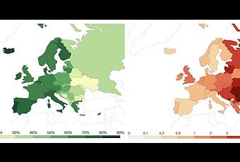 Fuente: Johns Hopkins University. Última semana de octubreEn el primero de estos mapas, de un color verde cuya intensidad se relaciona directa y proporcionalmente con la cantidad, se nos muestra el número de personas totalmente vacunadas, expresado en un porcentaje respecto de la población total del lugar.En el segundo mapa, el de la derecha, puede verse representado el número de muertes por Covid (oficiales, demostradas y por cada millón de personas, en un promedio de siete días). Significados: -. Las personas no vacunadas asumen cada día un riesgo mayor. -. Finalmente sólo hay una solución perfecta: la del 100% de vacunados.