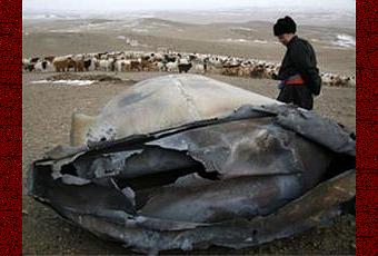 Dos objetos metálicos, uno cilíndrico y uno más pequeño cayeron cerca de Buren Soum en la provincia de Tuv, en Mongolia, en un área despoblada el pasado 19 de febrero.Izquierda: Uno de los objetos caídos en Mongolia. Crédito: MUFON.