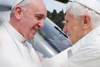 Diez días después de su elección como papa, Jorge Mario Bergoglio fue a visitar al pontífice emérito Joseph Ratzinger a quien además de llamarle públicamente hermano, platicó y convivió con él por espacio, en privado, de más de cuarenta minutos.