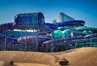 - LA ZONA DE LAS SENSACIONES: sensaciones XXL inéditas Este universo ofrece una variedad de atracciones, con 8 toboganes acuáticos (uno de ellos en exclusiva mundial), la piscina de olas sobre la que encontramos una red gigante suspendida y la salida hacia el río dinámico exterior.