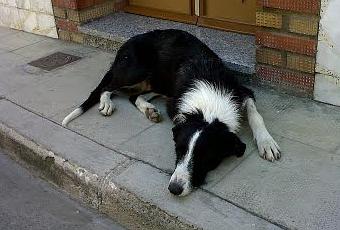 Este perro blanco y negro lleva meses y meses vagabundeando por mi pueblo, se que es de caza pero no se muy bien la raza, lleva desde ayer en mi calle porque claro, le ponemos de comer y beber pero lo mismo que hay gente que los "ayuda" hay gente que no los quiere y en concreto hay un municipal que no es la primera vez que llama a la perrera...