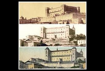 En estos dispersos enclaves se ubicaron las dependencias precisas para la formación de los alumnos, pues el Alcázar –propiedad del Patrimonio Real- permanecía en ruinas, desde 1810, en espera de su rehabilitación, una tarea de largo recorrido que comenzó en 1867. Desde 1850, Toledo viviría con angustia el cierre y la apertura de continuos centros destinados a la instrucción castrense. En 1883, llegaba la Academia General Militar de todas las armas para subsistir una década. Esto exigió mejorar los locales existentes, crear otros de nueva planta -como el de Capuchinos, en la fachada meridional- o adecuar la explanada oriental para todo tipo de ejercicios. Entre 1885 y 1886, tras demolerse con dinamita el viejo hospital de los santiaguistas, en su mismo lugar se alzaron un gran Picadero cubierto y una construcción de perfiles historicistas, renombrada como pabellón de Santiago. El 9 de enero de 1887, casi finalizadas las obras del Alcázar, un incendio lo devoraba por segunda vez en el mismo siglo. De nuevo había que promover su reedificación para no perder una institución que daba vida a la ciudad y cierto lustre social a la mesocracia toledana.