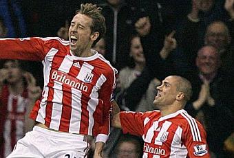 Los locales encontraron la ventaja de la mano de Peter Crouch. El delantero inglés convirtió uno de los mejores goles de su carrera con una media vuelta increible, que se clavó en el ángulo del arquero Hart. El lungo demostró que, a pesar de su tosco andar, puede sacar a relucir su técnica en los momentos difíciles.