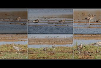 El plumaje muestra el patrón característico, con tonos pardos, beiges y cremas que se mezclan con el entorno, y un fino estriado en el pecho y los flancos. Las patas, largas y grisáceas, les permiten desplazarse con soltura entre el agua somera y la orilla fangosa. En reposo, adoptan la clásica postura sobre una pata o dedican tiempo al acicalamiento, lo que indica tranquilidad y adaptación al lugar. Pese a su tamaño, el zarapito real mantiene un perfil discreto y se integra visualmente en el paisaje del Delta, lo que hace que su observación requiera calma y atención.
