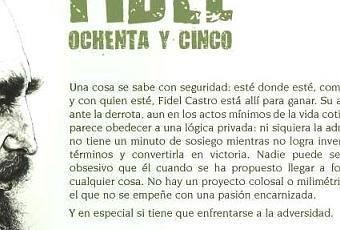 El pasado 13 de agosto andaba fuera de estas lides cibernéticas, por lo que no pude difundir la inmensa alegría de todo un pueblo, celebrando el 85 cumple de Fidel, así que no más regresar, quiero compartirles este hermoso Dossier que en su homenaje publicara la Jiribilla.