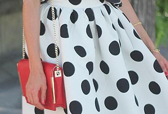 The outfit that I show you today combines two of my favorite prints, stripes and polka dots. I love separately the skirt and the top, and the combination of both seemed very nice. I added a red bag to give a touch of color to this black and white outfit.