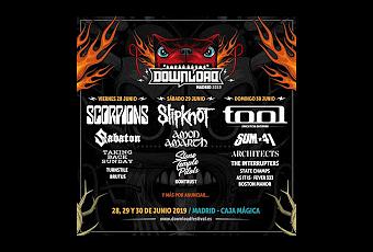 El Download Festival Madrid nos presenta su cartel por días para la edición 2019; un cartel por días con mucho peso en cada jornada.Las tres jornadas del Download Festival del 2019 ya empiezan a tomar forma con el cartel por días de los confirmados. Desde el 28/6 al 30/6 en la Caja Mágica de Madrid habrá mucha música; la primera jornada por el momento tiene cuatro nombres donde Scorpions y Sabaton tienen casi todo el peso; en la jornada del sábado; sucede lo mismo pero con Slipknot y Amor Amarch como artistas cabezas de cartel junto a Stone Temple Pilots y la sorpresa; Komtrust. El domingo por su parte encontraremos a Tool, Sum 41, Architects y varios nombres más y se avanza que el festival sumará en unos días más nombres nacionales e internacionales.