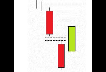 La pauta se caracteriza por dos velas rojas y largas con un gap a la baja entre ellos durante una tendencia bajista, el tercer día es una vela verde que cierra el gap a cierre de mercado, la vela verde se puede entender como toma de beneficios.