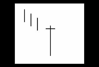 Esto quiere decir que en esa jornada hubo una venta buena del lado de las fuerzas bajistas al iniciar el mercado y en medio de la tendencia bajista previa. Pero unos momentos antes de cerrar la jornada, el mercado se cierra con el mismo precio que hubo en la apertura. Esto quiere decir que hubo una debilidad en el sentir bajista precedente. La figura es igual al martillo, pero con la ventaja de que tiene mucha más fiabilidad.