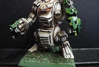 El Dreadnough modelo Furibusdus está armado con un bolter en el brazo derecho y un lanzamisiles (070184/B) en el brazo izquierdo.