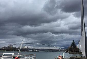 Simbolismos que tratan de resumirse con este monolito metálico que no casa demasiado con lo bucólico que en ocasiones puede llegar a ser el lugar, desde el que parten no pocos cruceros fluviales.