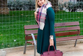 ¿Qué os parece el look de hoy? Gracias por vuestras visitas y comentarios. Nos vemos el martes con un nuevo post.Good night! Today I show you an outfit with my last shoppings in the sales. I wore my new knit dress in green colour that I mixed it with a black biker, my new black boots over the knees and my plaid maxi scarf. A comfy and feminine outfit that it's perfect to wear in our daily days.What do you think about the outfit of the day? Thanks for your visits and comments. I will see you on Tuesday with a new post!