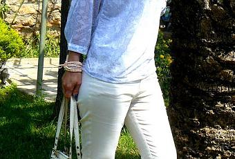Pantalones de Mango, Blusa H&M, Bolso Mango y Sandalias de Blanco.