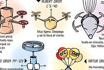 Estos aparatejos se han puesto de moda antes de nacer una regulación de su uso; no cabe duda que no es agradable chocar de bruces contra un artefacto volador utilizado con la intención de fotografiar en actitud particular a la vecina del cuarto. En fin, la viñeta, publicada en un diario de tirada nacional hace escasos días, recoge perfectamente la variada idiosincrasia de los líderes políticos nacionales, especialmente en lo referente al catalán impasible, a quien la cortina de humo de la independencia le empieza a fallar cuando trata de cubrir la corrupción generalizada de su formación política. Mariano no choca con todo, posiblemente ni despegue el vuelo, en una suerte de inacción prolongada en la que el tiempo es la panacea que cura todos los males, por encima de un vociferante Pedro Sánchez que resultó, en campaña, ser un mal actor, además de un líder con los pies de barro, carcomidos por los barones de su propio partido. No se descarta una gran coalición de fuerzas pseudoprogresistas con socialistas, podemitas y otras formaciones minoritarias, sería tal vez, la mejor vacuna contra la política de incrementar el gasto público con la consiguiente pérdida de confianza en nuestra economía y consecuencias negatias que afectarían especialmente a las clases más desfavorecidas. Pero tengo la sensación de estar saliéndome del tema; de momento, me regalaré un dron para estas señaladas fechas, para que al menos, algo de nuestro entorno vuele con cierto grado de libertad, aún no regulada.