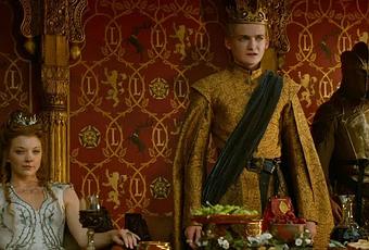 Lo que vemos después es la expresión cruda y palpable del carácter psicótico y sádico de Joffrey. El recién casado ha preparado un dantesco y vergonzoso espectáculo en el que cinco enanos recrean la Guerra de los Cinco Reyes de la forma más burda posible. Se trata de una humillación que lanza un mensaje directo a Tyrion y Sansa (Sophie Turner). No obstante, el calvario de Tyrion no finaliza con la representación sino que continúa a través de las constantes provocaciones que sufre a manos del monarca. Joffrey sigue humillando a su tío y éste responde enervando más aún al despiadado adolescente. Justo cuando la situación parece destinada a la catástrofe, la entrada de la tarta nupcial interrumpe el enfrentamiento. Lo que vendrá a continuación significará la defenestración final de Joffrey pero también el peor de los destinos para Tyrion.