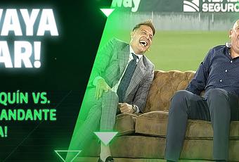 ¡Vaya par de dos humoristas Joaquín vs Comandante Lara! Disfrutar del video del betis donde este duelo de chistes no podréis disfrutar de reír en un sofá en el medio del campo de fútbol del betis y donde está el presentador y estos dos cracks contando chistes buenos!.