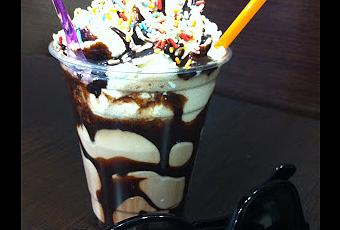 La ultima vez que estuvimos pedimos unos frappés, que con tanto aroma a vainilla, caramelo, nata y demás condimentos hizo que el sabor del café desapareciese. Eso no quiere decir que estuviese malo, sino todo lo contrario. Asi que la segunda vez, nos fuimos a por los batidos de helados, que solo con oír el nombre se nos hacia la boca agua: "batido de helado de huesitos con topping de oreo", "batido de helado de Kinder con topping de kitkat" y "batido de Ferrero rocher con virutas de colores". Sí, con virutas de colores! Aunque T me pusiera una cara de "pues vaya, mira que pedir virutas teniendo oreos y kitkats..."