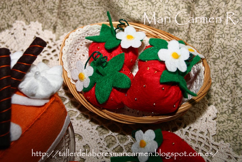 Las fresas las hice a mi estilo,con mucho detalle,con hojas,con flores,con abalorios,