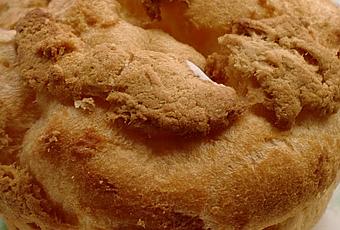 Se llama "Tenshi no Ring(Anillo de Angel )". Es un pan con la masa de hojaldre y es dulce. Parece que es muy conocido en Japón. Normalmente es de chocolate pero esta vez comimos el de la versión navideña que lleva chocolate blanco y frutos secos. Estaba muy bueno y me parecía el Panettone.