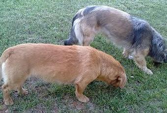 Dulce y Salaa, tienen la altura de un teckel las dos, son jóvenes y hembras, no sobrepasaran el año, pero desde luego se ve que han estado siempre juntas, se quieren un montón, se esperan, duermen juntas, se defienden, se cuidan, son una pasada, hasta comparten la comida, también se envía un vídeo donde se ven juntas. Las pobres miran cada coche que pasa y lo olisquean esperando imagino que sea el dueño el que va en el, de hecho se esperan en la puerta de entrada y salida de vehículos durante horas, solo moviendose a otro lado cuando el sol no lo pueden aguantar mas, aunque enseguida vuelven ahí, con el correspondiente peligro que corren al estar en un lugar donde a ciertas horas hay mucho trafico de vehículos.