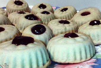 6. Haremos un pequeño agujero en el centro para poder insertar la mermelada, también podemos dejarlos tal y como están sin decorar.7. Metemos al horno, 200º arriba y a bajo, hasta que queden doradas por abajo, por arriba la masa queda blanca.8. Dejamos que enfríen un poco, tampoco demasiado, porque sino se nos pueden secar. Y decoramos el centro con la mermelada.