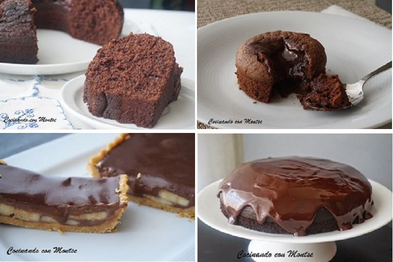 Hoy os presento una selección de dulces con chocolate, todos muy sencillos y fáciles de preparar. Como veis son variados, para todos los gustos incluido con fruta , que acompaña muy bien al chocolate.