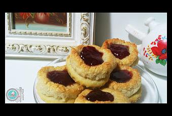 Dulces de eid al-fitr 3. Galletas coronadas de almendra y mermelada.