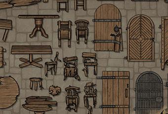 Recién salido de sus manos tenemos el Dungeon Decor - Pack 14.Obra de Levi y Jesh, es un set de 354 elementos centrados en sillas,mesas,taburetes y puertas (Estas ultimas de madera o de metal), de varios tipos y con opciones de que estén enteras o dañadas de diferentes formas.Esta en formato "paga-lo-que-quieras" con un precio sugerido de 4,43 euros la descarga.Hay de sobra para hacer por ejemplo una taberna antes y después de una pelea entre aventureros, parroquianos y la guardia local XD.