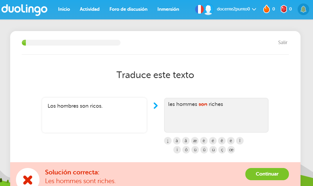 Como ya lo viene haciendo con los idiomas inglés y portugués, el curso comienza con una prueba de nivel o con las primeras lecciones, siempre dinámicas y en forma de juegos combinando textos e imágenes lo que hace que cualquiera pueda animarse.