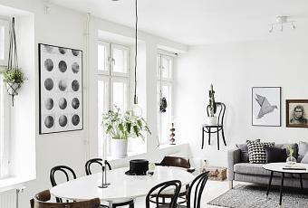 En este piso, con un estilismo nórdico moderno fantástico, solo he encontrado un estor en la última ventana del salón y se me ocurre que sólo tienen ese por cuestión práctica, que la ventana se refleje en la pantalla cuando vean la tele :) Fijaos que a través de las ventanas se pueden ver las ventanas de otros edificios muy cerca, como os digo, no hay pudor. Si alguna vez habéis estado en los países nórdicos y os habéis alojado en un piso, habréis comprobado que por las noches y desde la ventana, se pueden observar sus rutinas cuando vuelven a casa del trabajo, como si de una peli de Hitchcock se tratara. ¡Feliz martes!