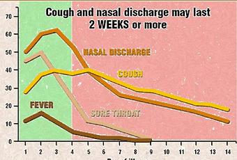 Vean esta excelente infografía sobre la duración de los síntomas del resfriado causante del desespero de los padres. Lo peor son la tos y los mocos y la tos: ¡hasta dos semanas!. Por ese motivo, los niños no paran de toser hasta que empalman con otro catarro...