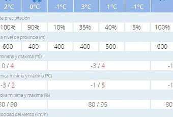 Esta mañana en algunas poblaciones del Bierzo, los coches y tejados dejaban muestra de una tímida nevada recibiendo el nuevo año, hoy, según la AEMET, hay una probabilidad del 90% de nieve a partir de 400 metros. La previsión da probabilidad de agua intermitente al 100% durante todo el día y entre 18 y 24 horas nevadas a partir de los 400 metros con una probabilidad del 90%. Las temperaturas variarán a lo largo del día entre 0 y 4º.