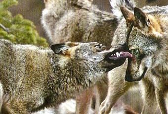 Un lobo muestra sumisión al líder de la manada en la Sierra de la Culebra (Zamora). Foto: Andoni Canela