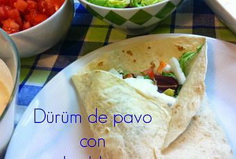 Ya comercializan las tortillas de trigo tamaño XL para el dürüm (de hecho hice el plato tras comprar las en mi supermercado) y también venden ya el pavo adobado en pimentón para ahorrar tiempo, así que, no tenemos excusas!