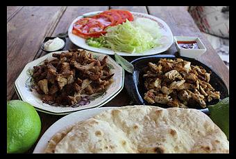 3.Cuando ya está todo preparado, cortar todo y poner la carne y las verduras en el centro de la tortita aderezar con la salsa y enrollar.