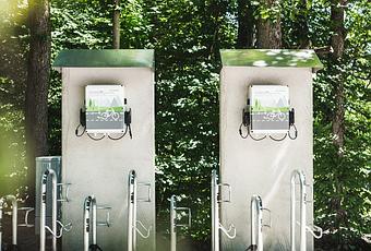 Spelsber y la carcasa GEOS innovadora y extremadamente robusta es la base de la estación de carga también conocida como E-Bike Charging Station. En la configuración estándar, la estación de carga para bicicletas eléctricas BCS está equipada con sistemas de carga originales de Bosch y Shimano, así como enchufes SCHUKO.