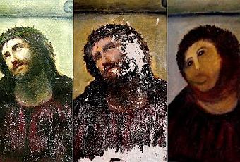Supongo que a estas alturas la mayoría de vosotros ya conoceréis el célebre Ecce-Homo de la localidad zaragozana de Borja. Una pintura de un siglo de antigüedad y escaso valor artístico que se convirtió en toda una noticia cuando una vecina de la localidad, con más buenas intenciones que maña, lo arregló hasta transformarlo en una parodia del original.