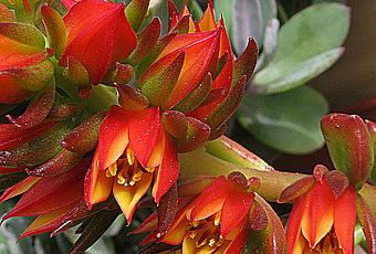 Hace dos años que la tengo. Las rosetas son de color verde intenso y brillante con el ápice y los bordes rojizos en invierno. El porte se desparrama a medida que crece, los tallos son leñosos y lo mejor sin duda son las flores. El contraste entre el rojo de los capullos y envés de las flores con el verde brillante de las rosetas. El interior de las flores de color amarillo...Su cultivo es fácil. Florece en el mes de Febrero. Hay que ponerla al sol, de lo contrario le cuesta abrir los capullos.