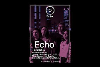 Echo despedirán disco y presentarán un concierto muy especial en Sala El Sol donde demostrar que sus canciones son algo más que puro sentimiento y fuerza. Junto a la banda estarán Gimnástica en calidad de banda invitada, un verdadero torrente de sonidos potentes y clase personal que nos espera con ganas de sorprender.