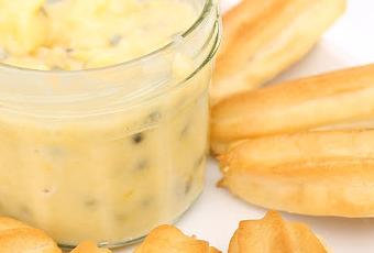 - Transferir la mezcla en un bote de cristal , dejar enfriar y luego refrigerar durante 10 horas.- Rellenar el eclair con curd de fruta de la pasion y si queréis servir con una fina capa de azucar glas con zumo de limón.