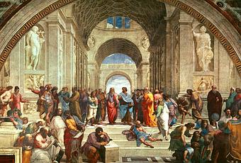 Platón y Aristóteles (centro), La Escuela de Atenas. Pulsar para detalle.