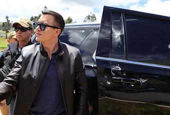 El ministro de Defensa, Gian Carlo Loffredo, compartió una foto de Noboa, de 37 años, de pie frente al coche averiado con gafas de sol.