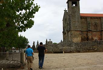 Largo traslado en coche y heme aquí frente a un edificio viejo donde mis raptores pasaban el tiempo maravillados discutiendo sobre si se trataba de un magnífico ejemplar de románico tardío de transición o gótico, del siglo XIII, construido o no por los Condes de Monterrei, con nave rectangular dividida por tres arcos sostenidos por contrafuertes y ábside semicircular con fachada ilustrada y tímpano con cruz y Agnus Dei, soportada por columnas con decoración variada.