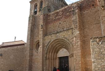 Entraremos por su hermosa portada en el lado Sur, abocinada con cinco arquivoltas sobre columnas acodilladas con delicados capiteles, tallados con motivos típicos del románico y unas jambas biseladas que enmarcan lateralmente la puerta de herrajes medievales.