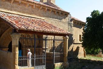 Su portada, del siglo XIII, se abre al sur junto a una frondosa morera protegida.