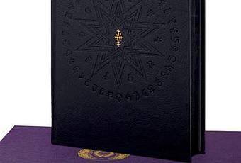 Preparado dentro de una caja de color verde marino y púrpura, el volumen presenta tonos negros hasta sus mismos bordes de página, destinados a rivalizar incluso con los tomos prohibidos de las malditas bibliotecas de Lovecraft. La encuadernación está grabada en relieve con un dispositivo de oro y símbolo astral, similar a los antiguos jeroglíficos utilizados para convocar a sus antiguos monstruos dioses.