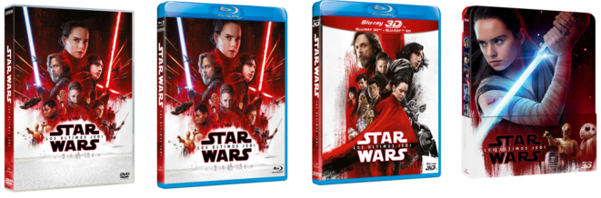 Solamente en alta definición, Star Wars: Los últimos Jedi cuenta con más de 3 horas de contenido extra y un total de 14 escenas eliminadas y desveladas por primera vez. De este modo, la edición en Blu-ray™ incluye dos discos (Blu-ray™ 2D y un disco de contenido extra), el Blu-ray™ 3D con tres discos (Blu-ray™ 2D y Blu-ray™ 3D y un disco de contenido extra) y la edición Steelbook® con tres discos (Blu-ray™, Blu-ray™ 3D y un disco extra). A través de la compra o alquiler digital HD, los usuarios también podrán acceder al contenido extra.